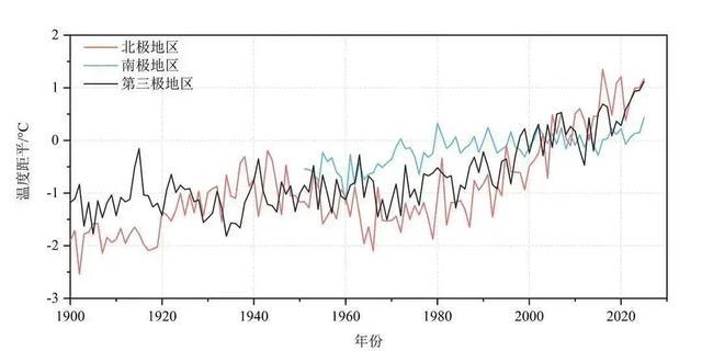 根据2025年数据显示,其世界第三极地区平均温度再次破历史极值,且区域平均温度已连续4年刷新历史最高纪录,第三极地区平均温度较常年值偏高1.12度,从长期数据来看,在1961—2025年,青藏高原升温速率明显高于同期全球平均水平。
